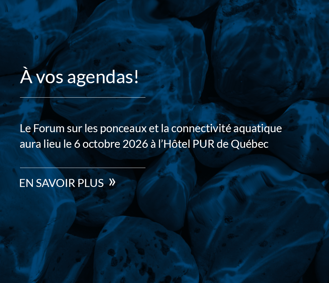 Le Regroupement des organismes de bassins versants du Québec (ROBVQ) est heureux de vous annoncer l’ajout d’un forum à son offre événementielle 2026. Sortez votre agenda! Le Forum sur les ponceaux et la connectivité aquatique se tiendra le 6 octobre prochain à l’Hôtel PUR de Québec. Celui-ci sera organisé avec la collaboration de Conservation de la nature Canada, dans le cadre de l’Initiative québécoise Corridors écologiques.